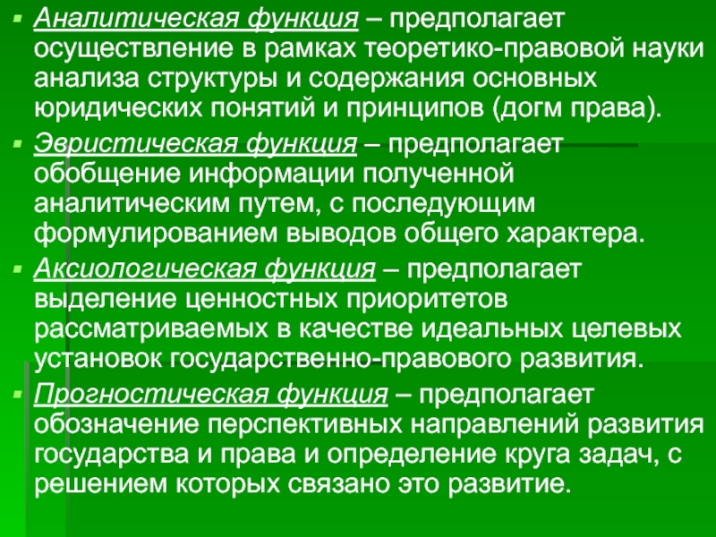 Слайд 39Аналитическая функция – предполагает осуществление в рамках теоретико-правовой науки анализа