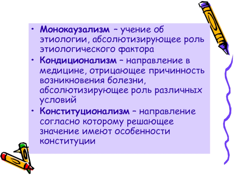 Монокаузализм – учение об этиологии, абсолютизирующее роль этиологического фактора