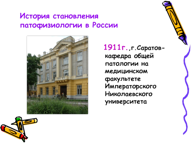 Слайд 19 1911г.,г.Саратов- кафедра общей патологии на медицинском факультете Императорского Николаевского