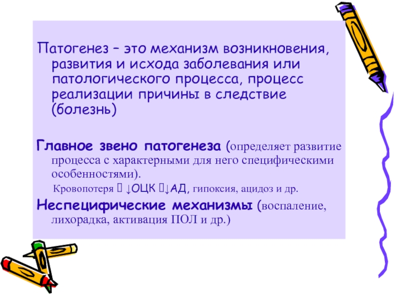 Патогенез – это механизм возникновения, развития и исхода заболевания или