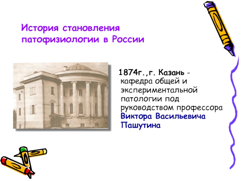 1874г.,г. Казань - кафедра общей и экспериментальной патологии под