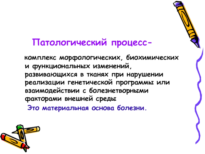 патологического процесса, процесс реализации причины в следствие (болезнь)