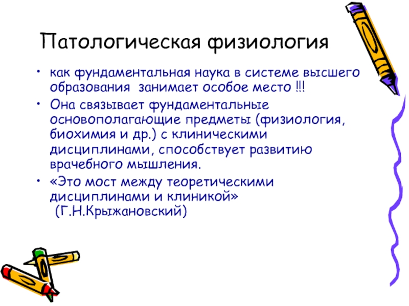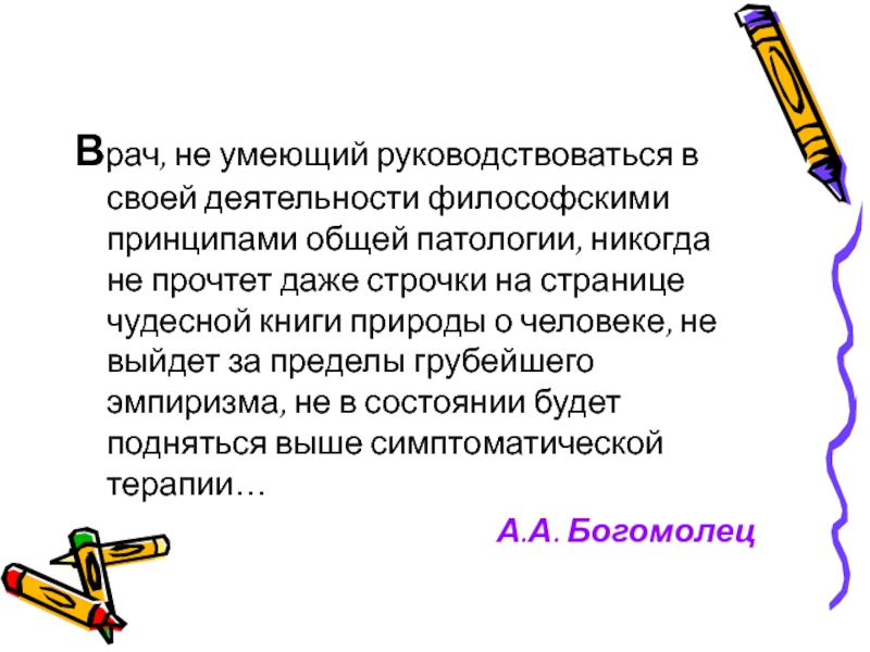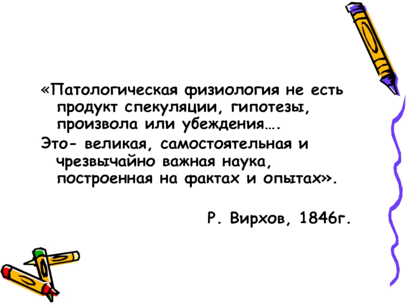 Слайд 8«Патологическая физиология не есть продукт спекуляции, гипотезы, произвола или убеждения….