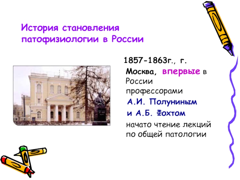 Слайд 11 1857-1863г., г.Москва, впервые в России профессорами