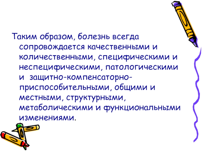 Таким образом, болезнь всегда сопровождается качественными и количественными, специфическими и