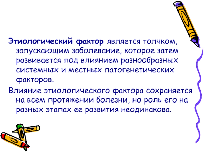 Этиологический фактор является толчком, запускающим заболевание, которое затем развивается под