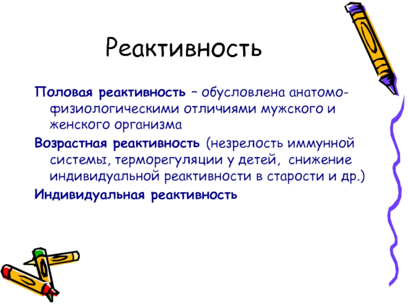 Половая реактивность – обусловлена анатомо-физиологическими отличиями мужского и женского организма