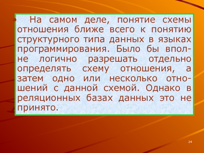 Слайд 24 На самом деле, понятие схемы отношения ближе всего к