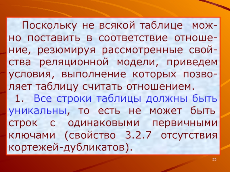 Слайд 53 Поскольку не всякой таблице мож-но поставить в соответствие