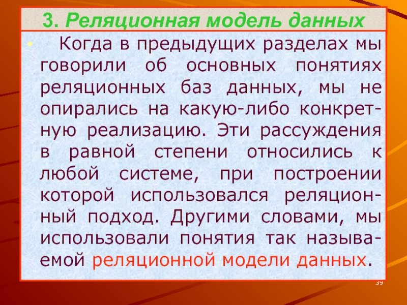 понятия реля-ционных БД, а также определим существо реляционной модели данных