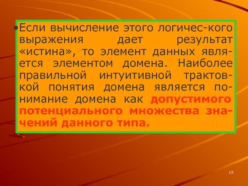 данных явля-ется элементом домена. Наиболее правильной интуитивной трактов-кой понятия домена