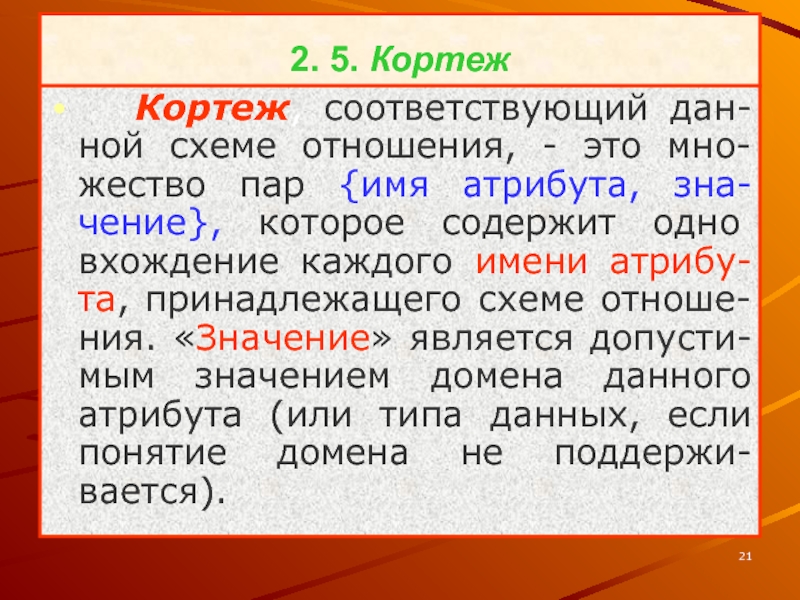 Слайд 22 Тем самым, степень или «арность» кортежа, т.е. число элементов