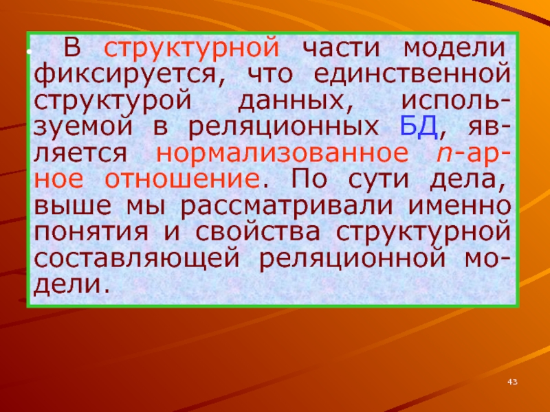 Слайд 43 В структурной части модели фиксируется, что единственной структурой