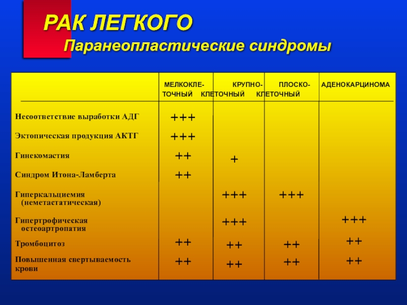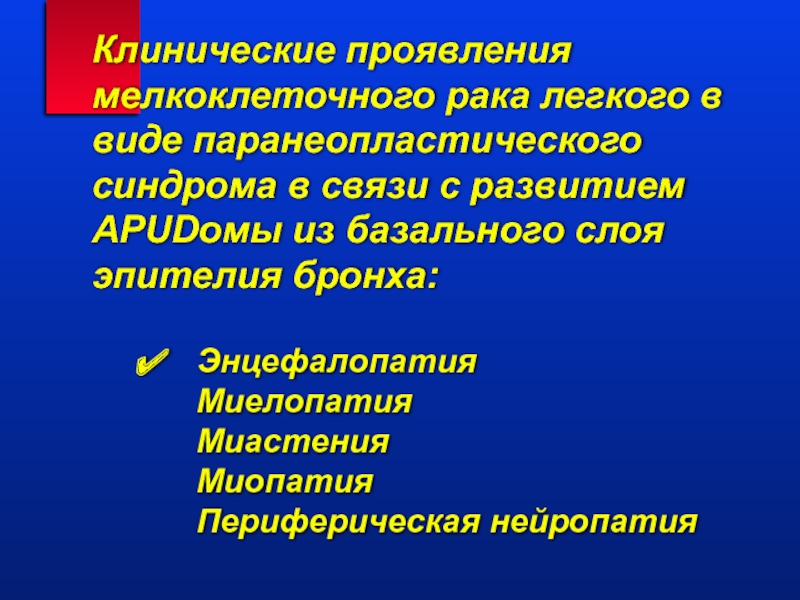 Слайд 38Клинические проявления мелкоклеточного рака легкого в виде паранеопластического синдрома в