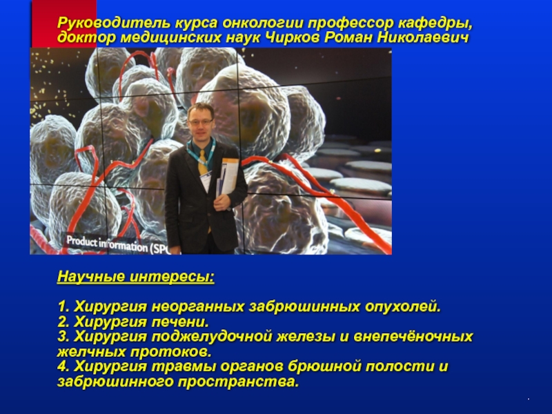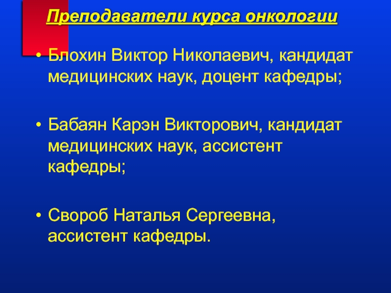 Слайд 2Руководитель курса онкологии профессор кафедры, доктор медицинских наук Чирков Роман