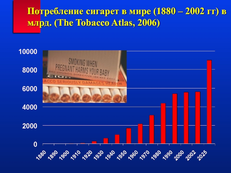 Слайд 8Потребление сигарет в мире (1880 – 2002 гг) в млрд.