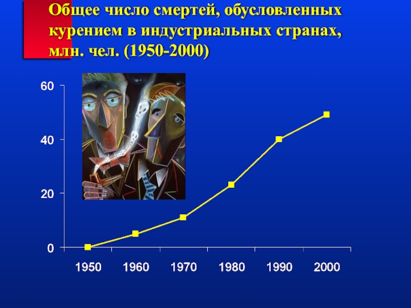 Слайд 9Общее число смертей, обусловленных курением в индустриальных странах,
