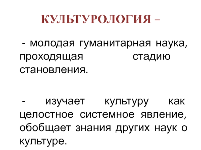 исследований феномена культуры.Культурология – наука о культуре.