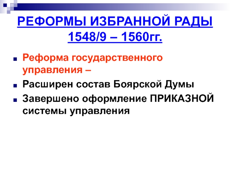 Слайд 5РЕФОРМЫ ИЗБРАННОЙ РАДЫ
