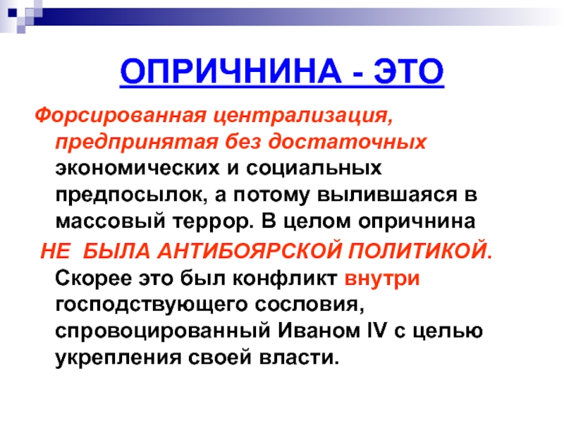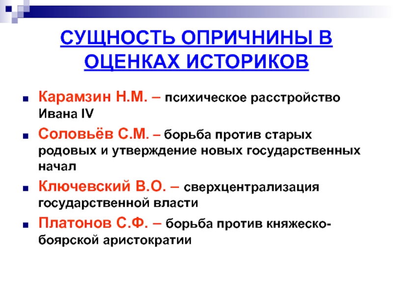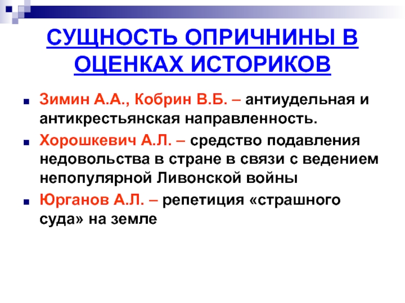 Слайд 18СУЩНОСТЬ ОПРИЧНИНЫ В ОЦЕНКАХ ИСТОРИКОВ