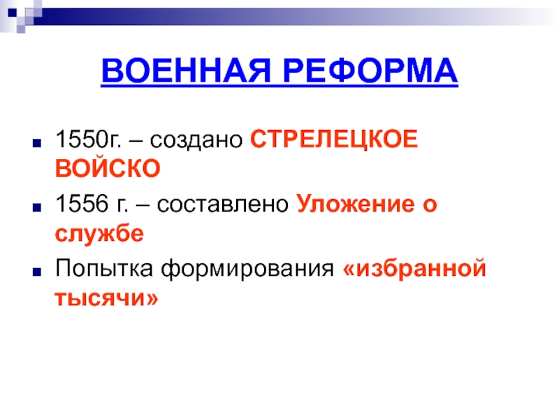 Слайд 13ВОЕННАЯ РЕФОРМА