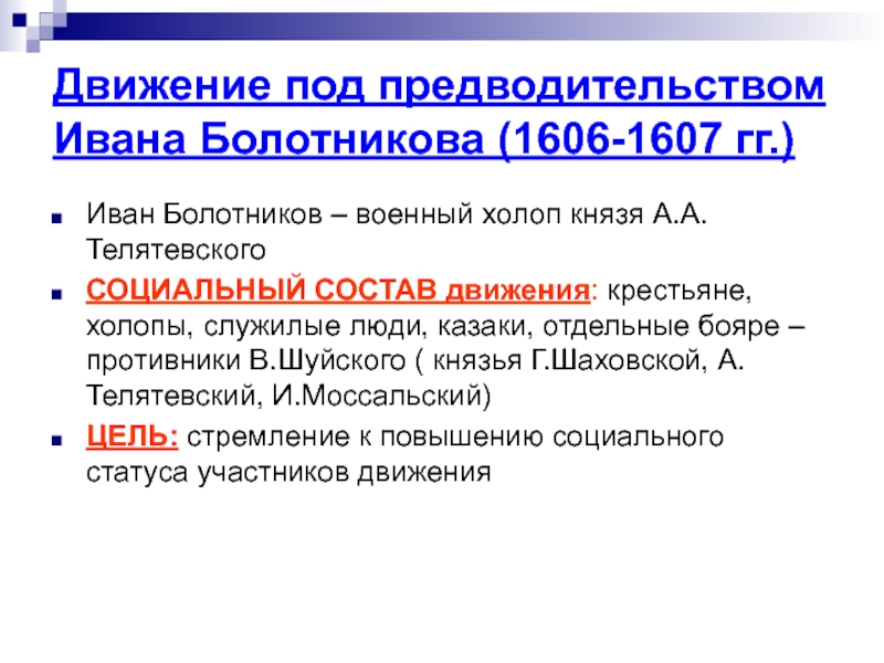 Слайд 31Движение под предводительством Ивана Болотникова (1606-1607 гг.)