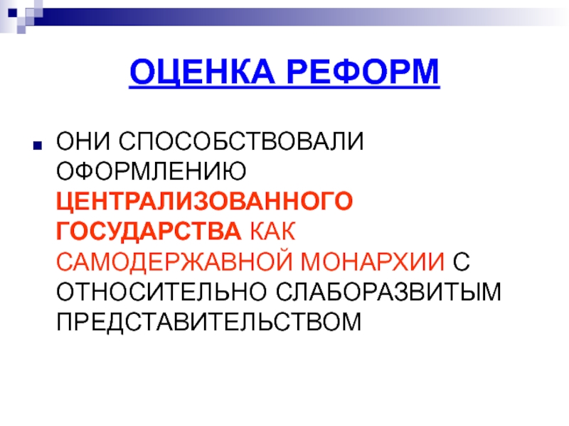 ОНИ СПОСОБСТВОВАЛИ ОФОРМЛЕНИЮ ЦЕНТРАЛИЗОВАННОГО ГОСУДАРСТВА КАК САМОДЕРЖАВНОЙ МОНАРХИИ С