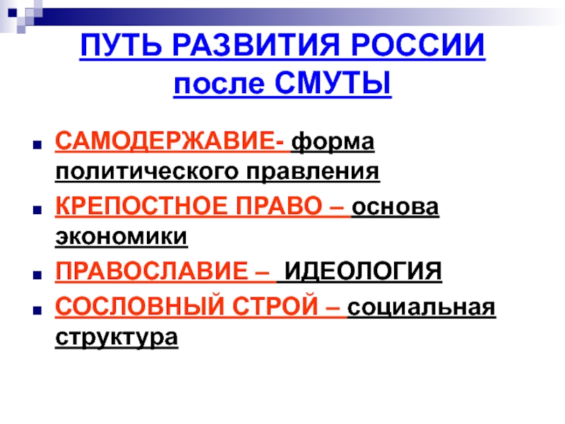 Слайд 40ПУТЬ РАЗВИТИЯ РОССИИ после СМУТЫ
