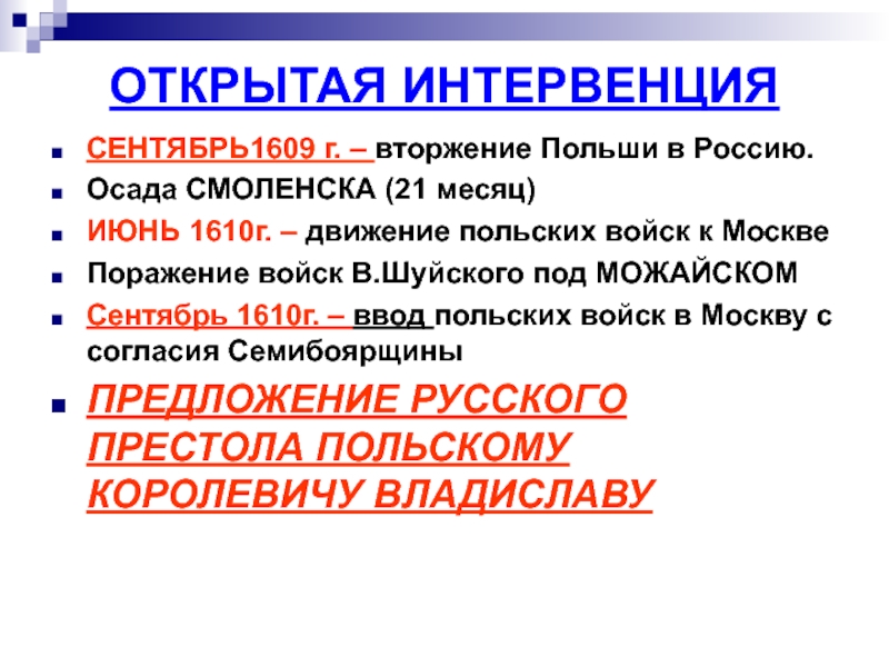 СЕНТЯБРЬ1609 г. – вторжение Польши в Россию.