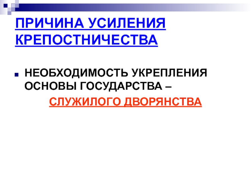 Слайд 10ПРИЧИНА УСИЛЕНИЯ КРЕПОСТНИЧЕСТВА