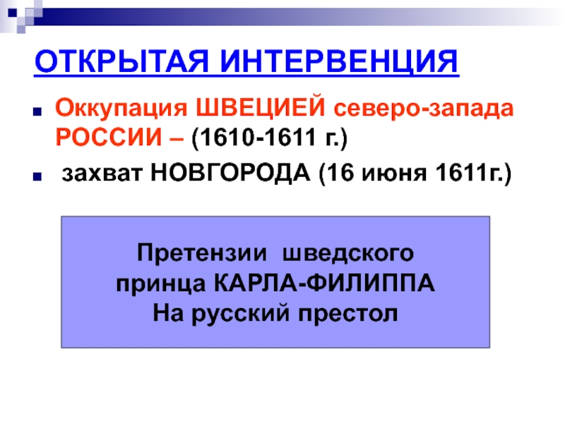 Оккупация ШВЕЦИЕЙ северо-запада РОССИИ – (1610-1611 г.)