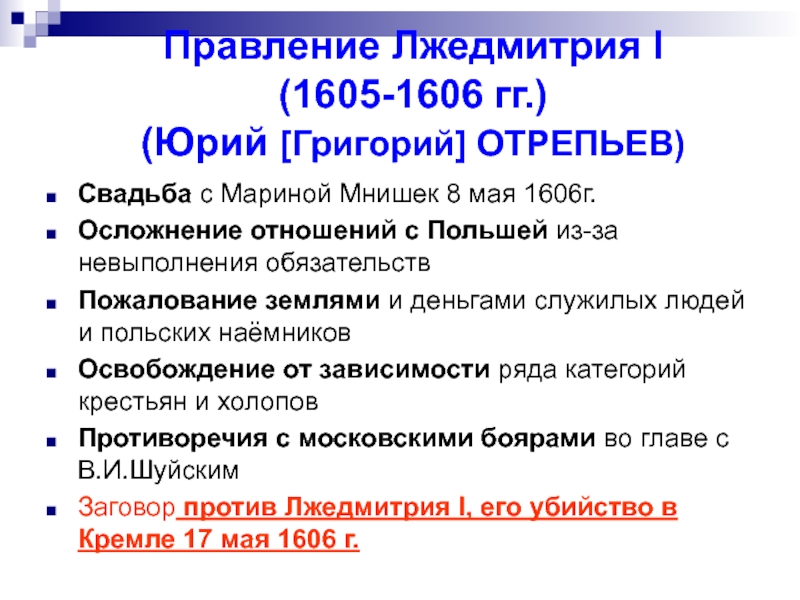 Слайд 30Правление царя ВАСИЛИЯ ШУЙСКОГО