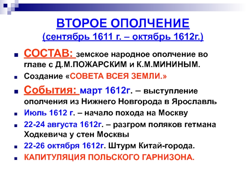 События: март 1612г. – выступление ополчения из Нижнего Новгорода в Ярославль