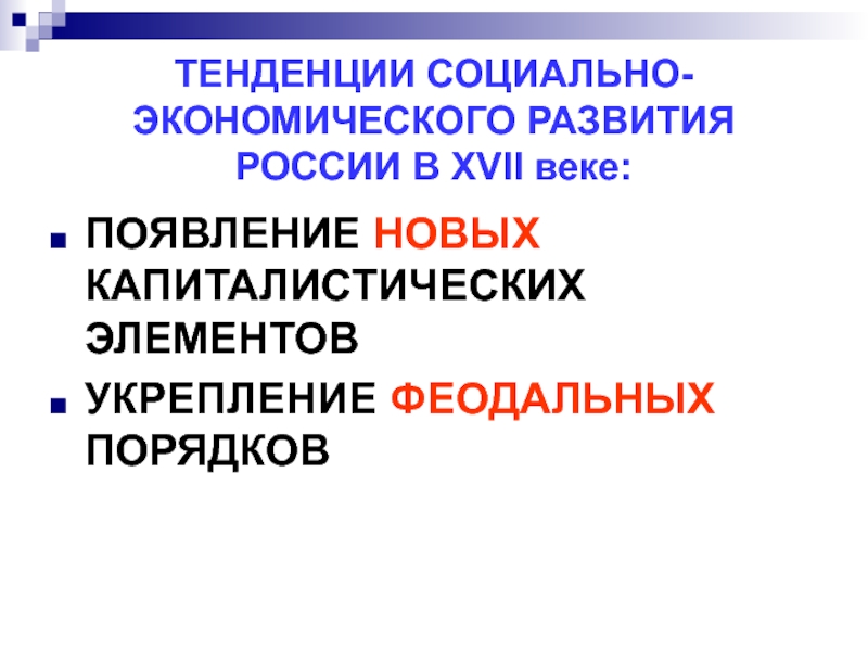 Слайд 7ТЕНДЕНЦИИ СОЦИАЛЬНО-ЭКОНОМИЧЕСКОГО РАЗВИТИЯ РОССИИ В XVII веке: