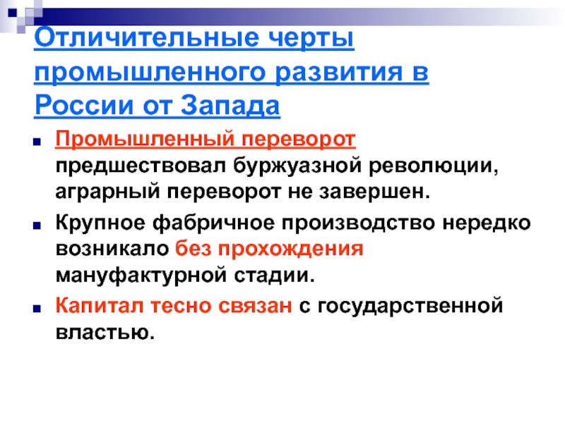 Слайд 116Отличительные черты промышленного развития в России от Запада