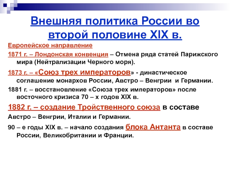 Слайд 111Внешняя политика России во второй половине XIX в.