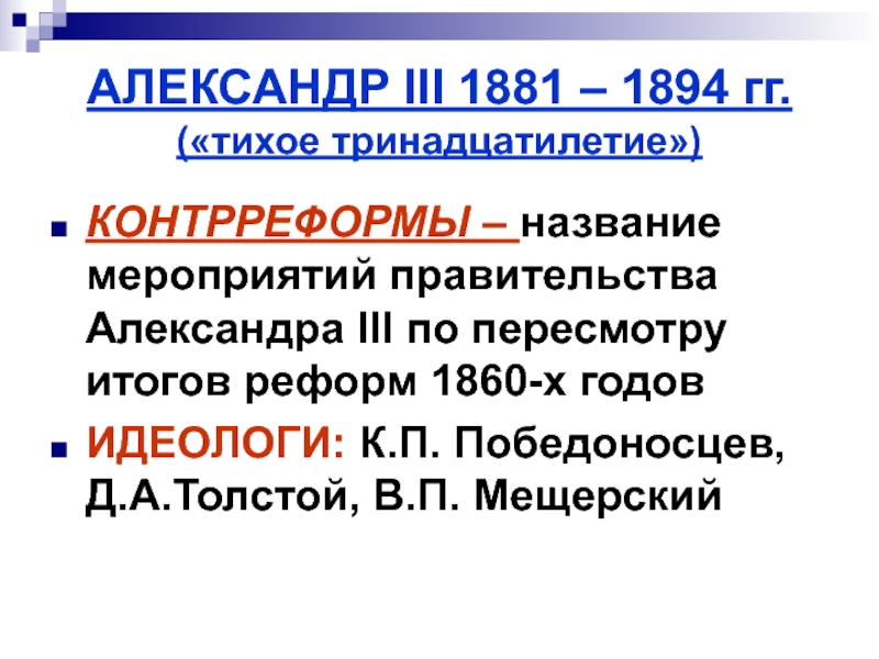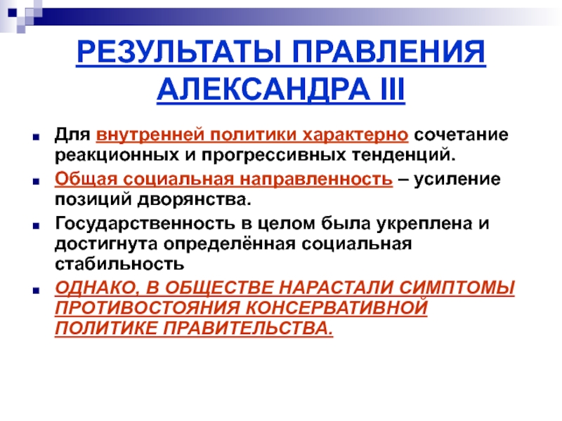 Слайд 106РЕЗУЛЬТАТЫ ПРАВЛЕНИЯ АЛЕКСАНДРА III