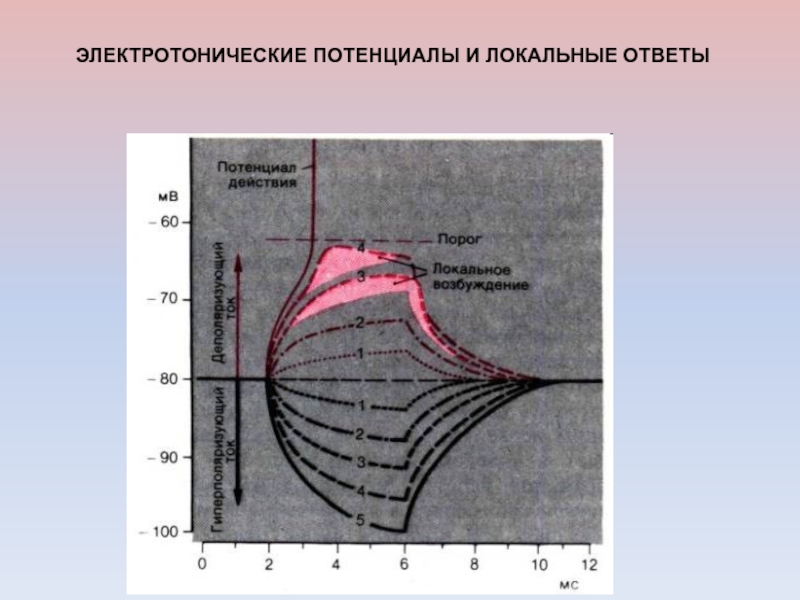 Слайд 55ЭЛЕКТРОТОНИЧЕСКИЕ ПОТЕНЦИАЛЫ И ЛОКАЛЬНЫЕ ОТВЕТЫ