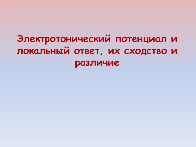 Слайд 52Электротонический потенциал и локальный ответ, их сходство и различие