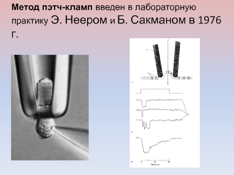 Слайд 23Метод пэтч-кламп введен в лабораторную практику Э. Неером и Б.