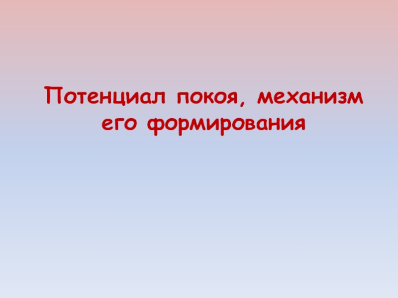 Слайд 32Потенциал покоя, механизм его формирования
