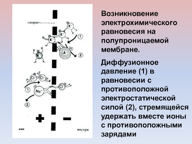 Возникновение электрохимического равновесия на полупроницаемой мембране.