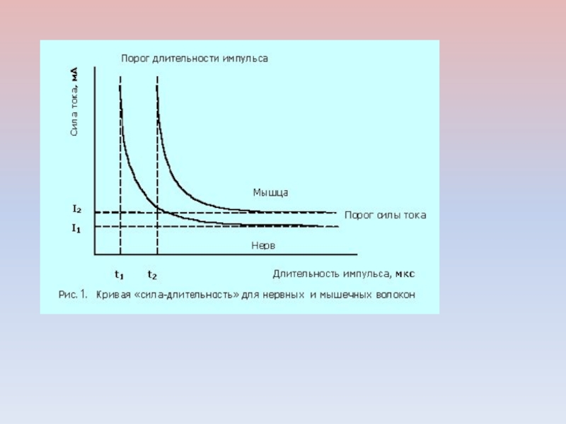 Слайд 8СООТНОШЕНИЕ МЕЖДУ ПОРОГОВОЙ СИЛОЙ РАЗДРАЖЕНИЯ И ЕГО ДЛИТЕЛЬНОСТЬЮ