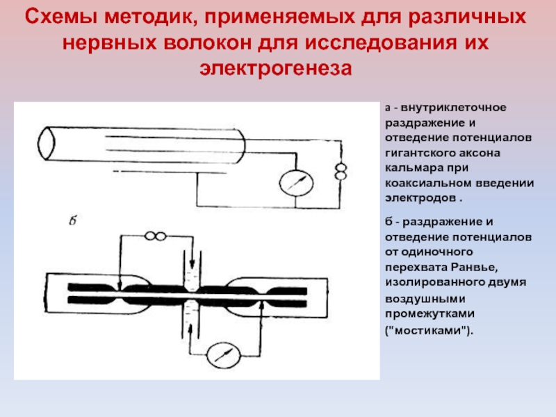 Слайд 15a - внутриклеточное раздражение и отведение потенциалов гигантского аксона кальмара