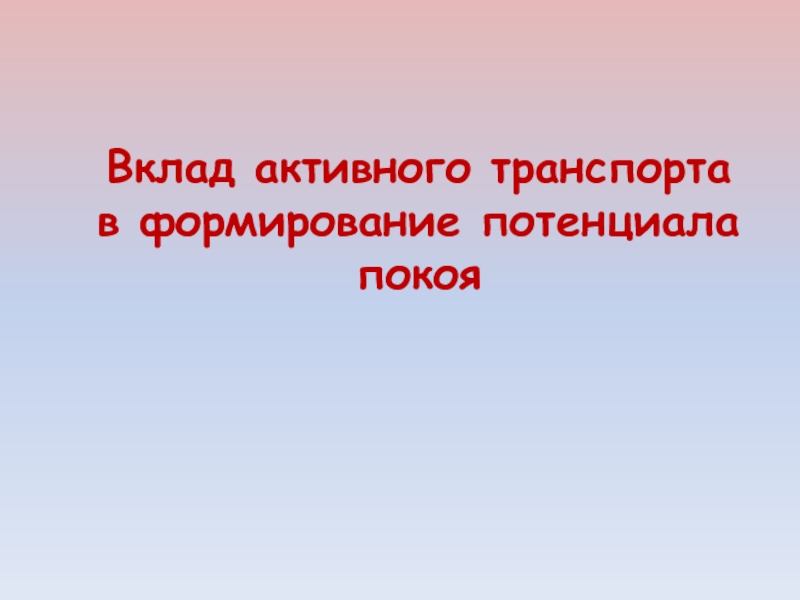 Слайд 49Вклад активного транспорта в формирование потенциала покоя