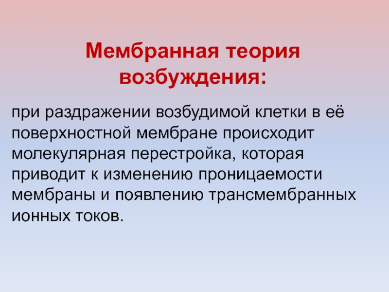 Слайд 28Мембранная теория возбуждения: