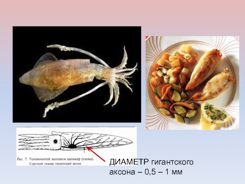 Слайд 13ДИАМЕТР гигантского аксона – 0,5 – 1 мм