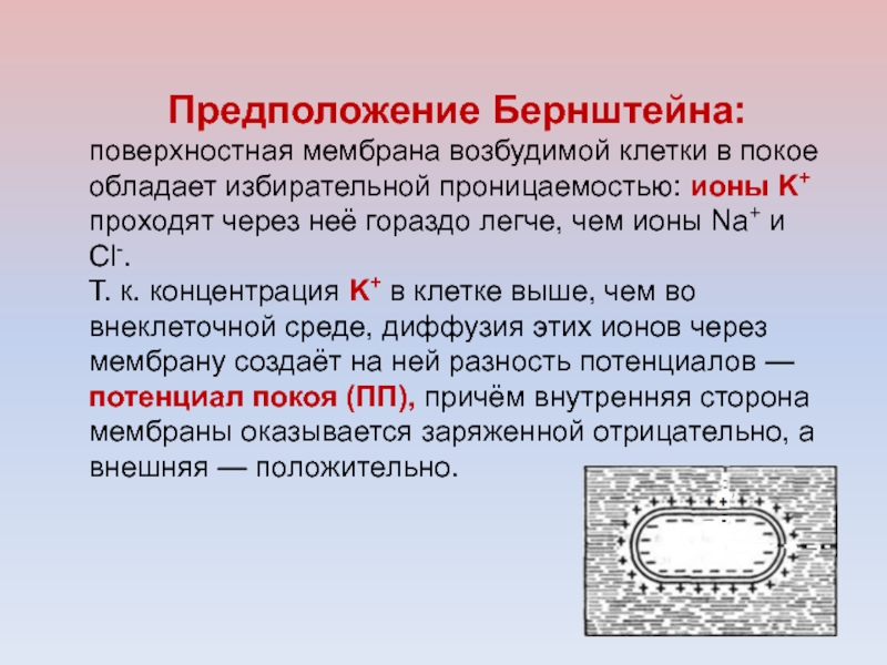 поверхностная мембрана возбудимой клетки в покое обладает избирательной проницаемостью:
