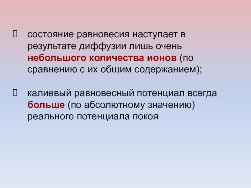 Слайд 43состояние равновесия наступает в результате диффузии лишь очень небольшого количества