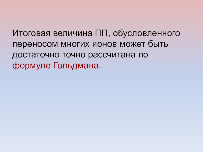 Слайд 47Итоговая величина ПП, обусловленного переносом многих ионов может быть достаточно